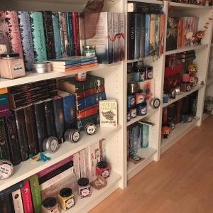So und jetzt seht ihr noch mein Bücherregal im Wohnzimmer, wo nur die Hälfte meiner Bücher Platz findet.