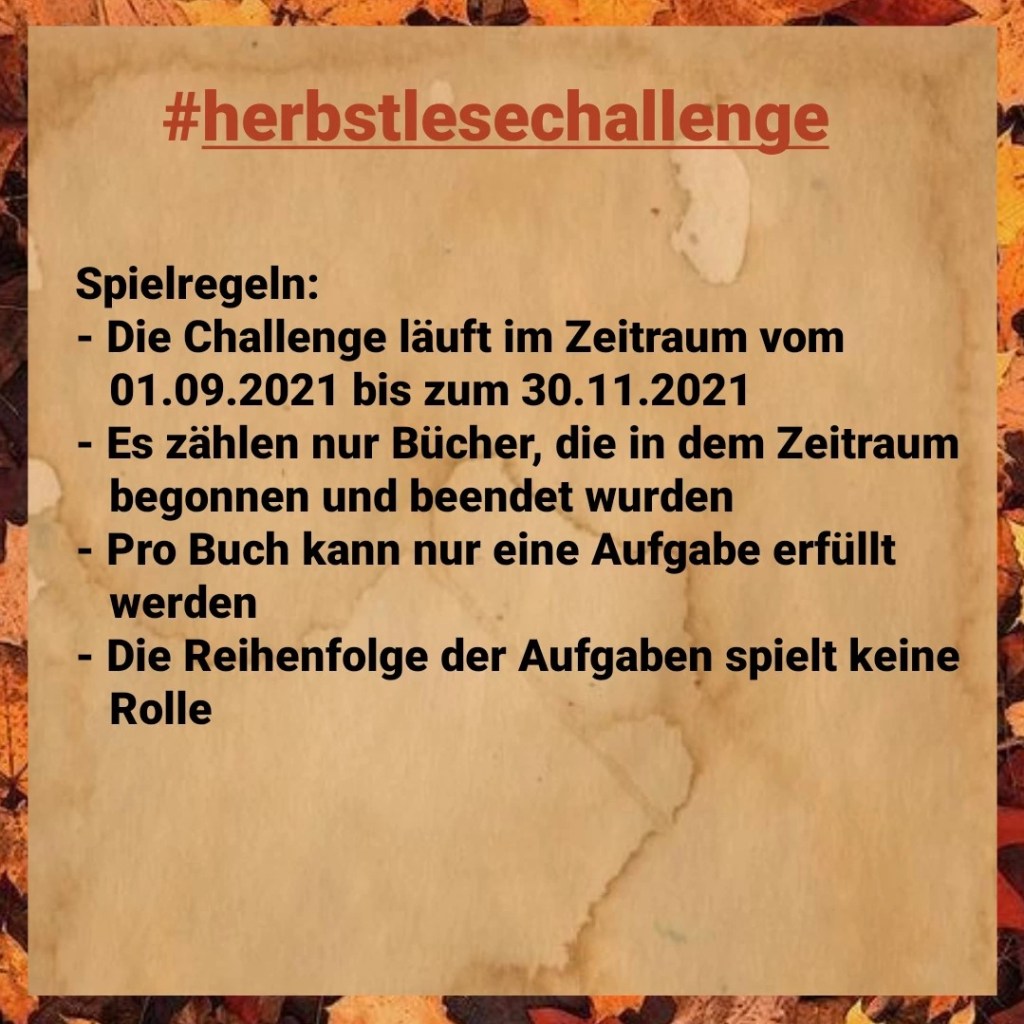 Für die Herbstmonate habe ich eine Lesechallenge vorbereitet, die quasi von September bis November geht. Auf euch warten 15 Aufgaben, die unter folgenden Regeln gelöst werden dürfen: