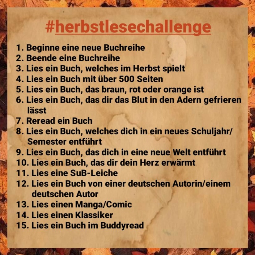 Und das sind die 15 Aufgaben der Herbst-Lesechallenge (#herbstlesechallenge):